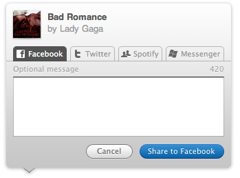 たとえばSpotifyでは、ユーザは特定の友だちに対して歌を贈ったり、自分のウォールに投稿して共有する事ができます。