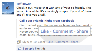 ユーザが取った単純なアクションが対話を引き起こします。サイト上に置くLike Buttonは、ユーザに共有させる上でシンプルで効果的な手段です。Send Buttonは似たような方法で、限られた友人間で共有する事を可能にします。アプリケーション側はこれらのアクションを繰り返し利用する事で、ユーザを巻き込む事が可能です。集約し時が経つと、これらのシンプルな交流は、対話を成り立たせるのに必要なより複雑で意味を持つデータを提供してくれます。