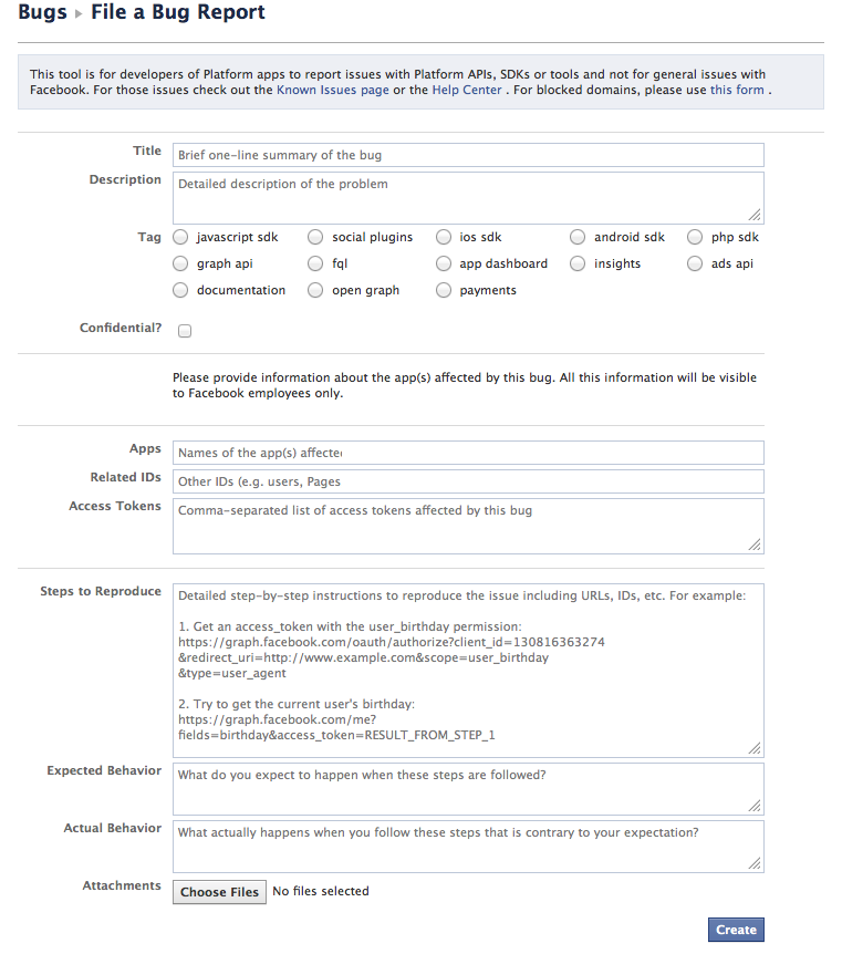 いきなりバグ報告だと敷居が高い、不具合なのか自信が無いという場合には、まずFacebook API Developers JAPANというグループに投稿してみるのが良いかもしれません。